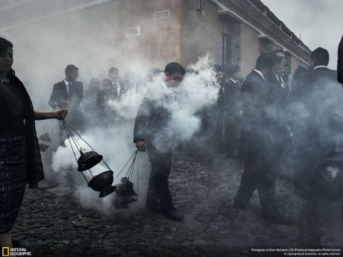 9、「死亡之日」,在危地马拉安提瓜的街道上,一场葬礼正在进行,人们怀着对于死亡的敬畏和肃穆穿行而过。