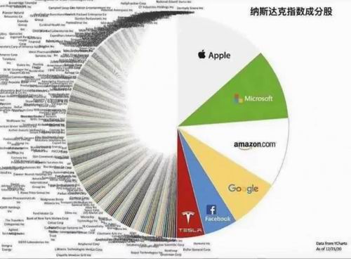 美国那边也一样,那几个巨头股价也要上天了,一个公司顶一国。纳斯达克去年涨成那样,其实主要是被下边六个给涨了: