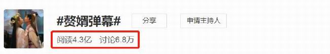打开微博,"赘婿里的经济学思维"、"赘婿致富经"、"赘婿二次元选角".等相关话题不断登上热搜榜,其中仅."赘婿弹幕".一个话题的阅读量就达到了.4.3.亿。