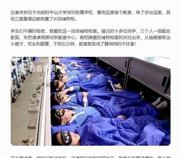 @阑夕:深圳一所小学用储物柜改装而成的午睡床,一方面因为体恤学生睡眠治疗(不用趴在桌子上睡)而广受赞誉,另一方面也因这个令人窒息的仿生人休眠舱造型让人感到不适。