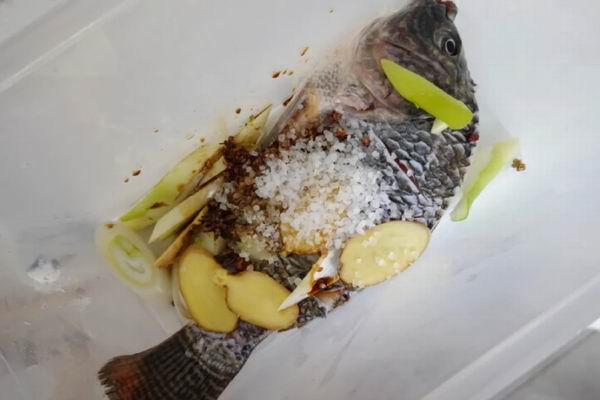3、第二天把鱼取出来内外擦干。
