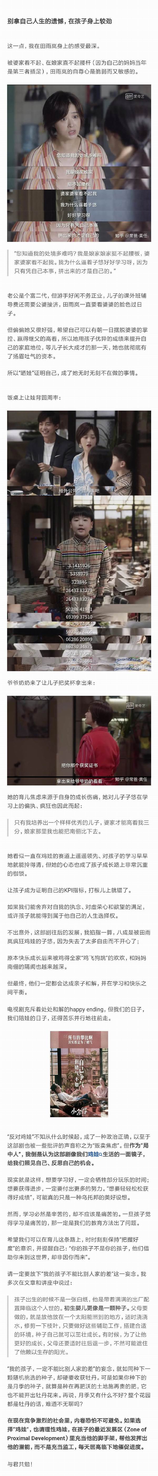如果故事就这么发展,鸡娃家庭继续鸡飞狗跳地鸡娃、佛系家庭继续岁月静好地生活,也不至于让我们觉得「扎心」和「真实」。《小舍得》真实就真实在:在这场大规模的鸡娃军备竞赛里,很难做到独善其身。剧里田雨岚的鸡娃程度,其他城市不敢说,但至少在北上广这样的城市,是一些鸡血妈妈的日常操作。而当南俪这样的佛系妈妈「误闯」进这样的氛围,她很难不被「剧场效应」裹挟。