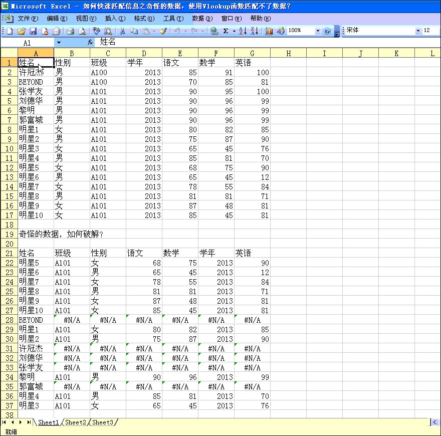 前面我们在第32讲讨论了如何快速匹配信息的知识,知道了联合Vlookup函数和Match函数,可以快速匹配信息,但是有时候从系统导出来的数据,我们使用Vlookup函数却不能匹配数据(无论是模糊匹配还是精确匹配),那怎么办?