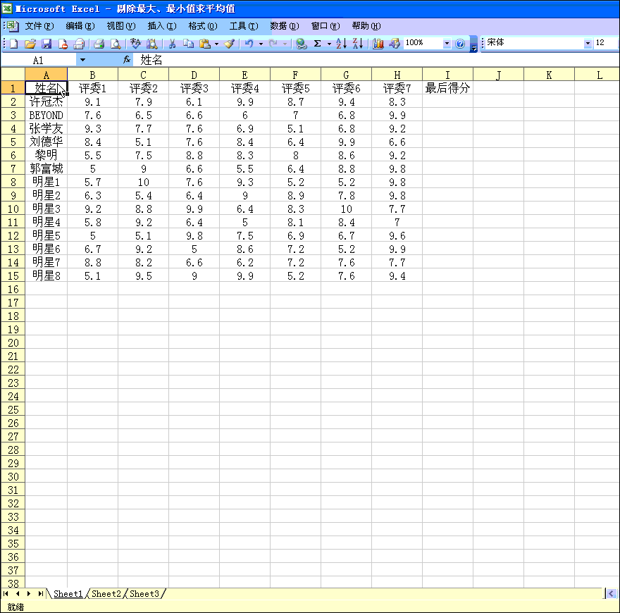 在面试中,我们都知道最后得分是剔除了最高分和最低分然后求平均值的,那么如何快速实现呢,请看演示: