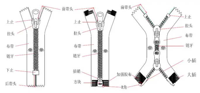 拉链,一种常见连接装置,核心构造由链牙、拉头、上下止等关键组件配合而成。
