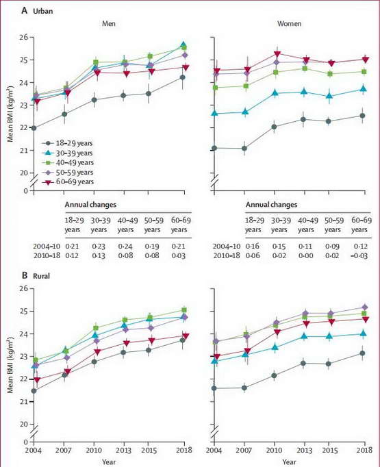 2021 年,中国疾控中心领衔的科研团队在《柳叶刀》期刊上发表了一项关于中国人体重的研究 [1]。
