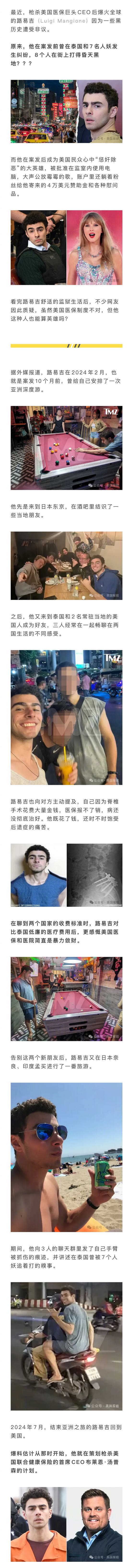 @英国报姐:近日,枪杀医保巨头 CEO 嫌犯路易吉被曝案发前在泰国被 7 个人妖追着打,还在监狱中享受玩电脑、粉丝打赏 28 万的 “特权” 引发争议…
