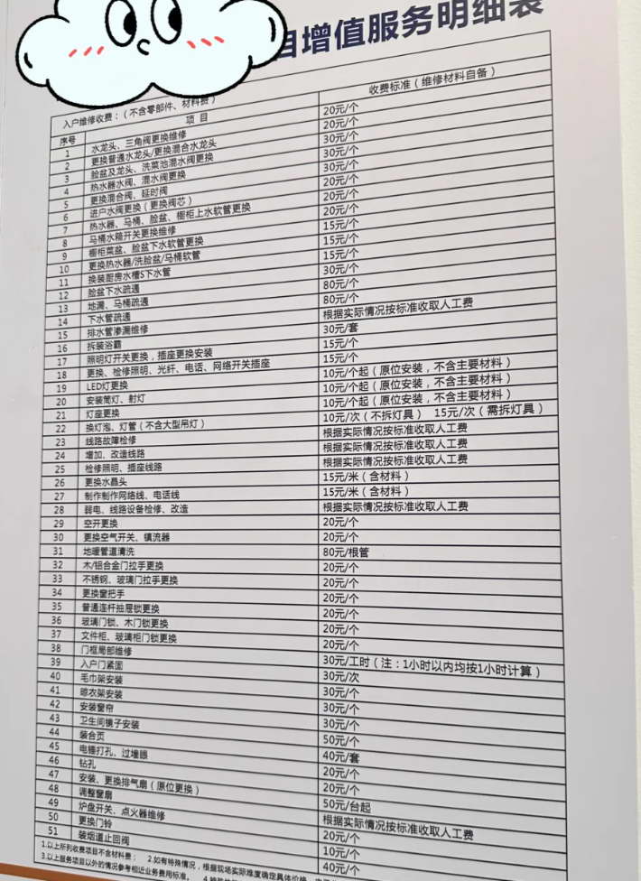 换灯泡 30,修马桶 50,你要什么,我就给你什么。