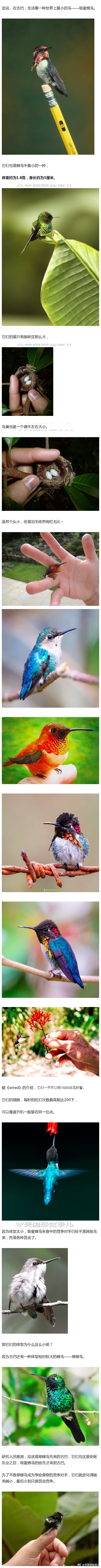 小的时候在书上第一次知道这种全世界最小的鸟就很想养一个,后来才知道中国没有。。。