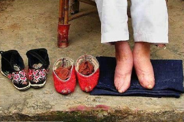 裹脚让女子的脚畸形,这样她们就不能到处跑了。这是那个时代变态最明显的证据,能够明目张胆地残害女人的身体,想必有虐待变态爱好的人很想回到那个时代。
