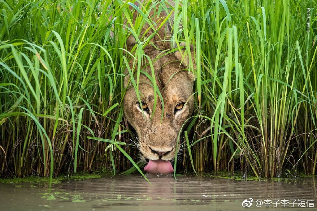 3,一头在赞比亚 Luangwa 国家公园里喝水的母狮子。