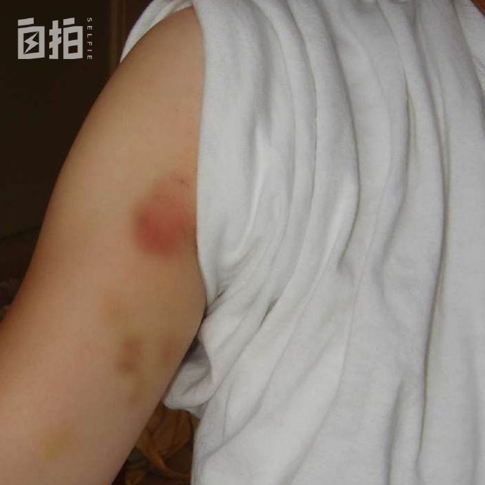 除了头部受伤,胳膊上也被撞出一大片淤青。