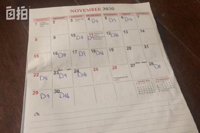 这是今年11月的工作排期,我有15天时间需要去监狱上班。
