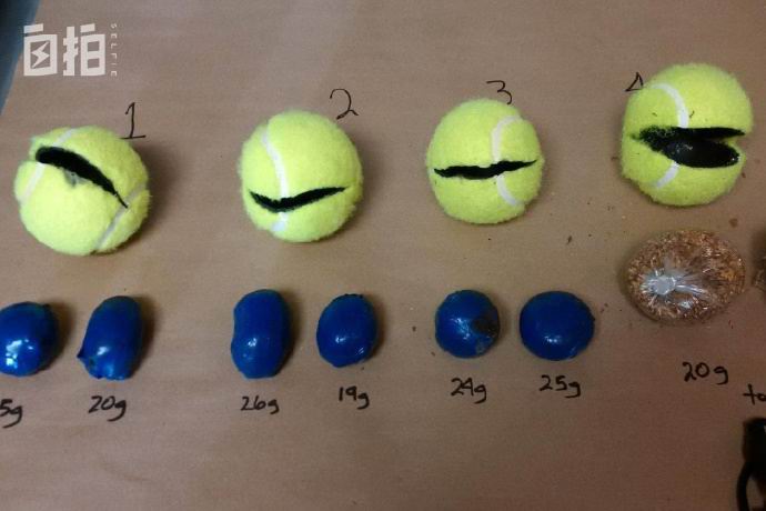 犯人总是想尽办法去搞违禁品,这是被查获的藏在网球中的毒品。