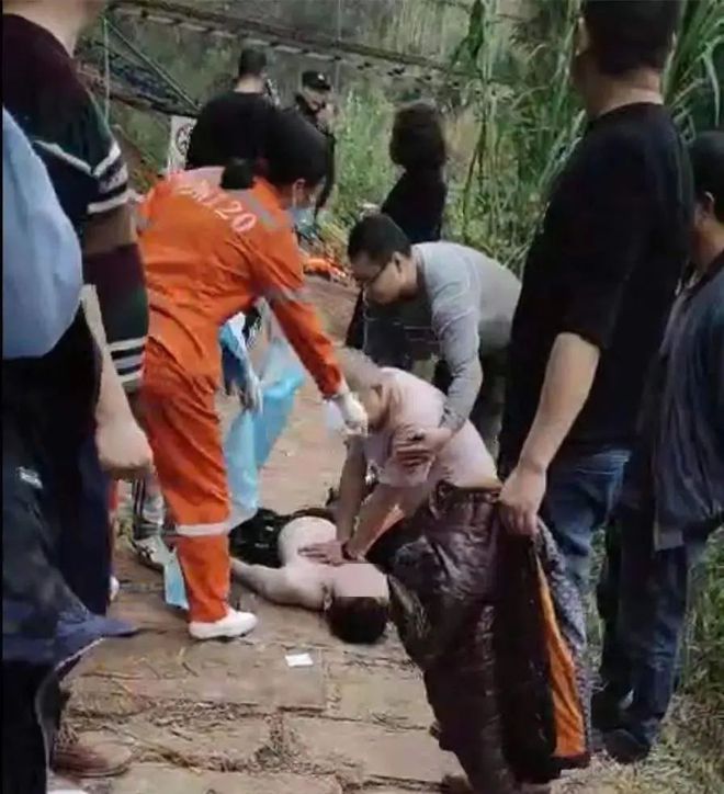 现场视频显示,河流中有多名身着救生衣的人,有人大喊“抓住绳子”,水中也有人未着救生衣在挣扎。另有视频显示,地面上有人对溺水者进行急救。