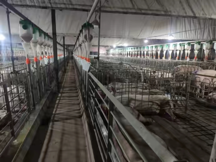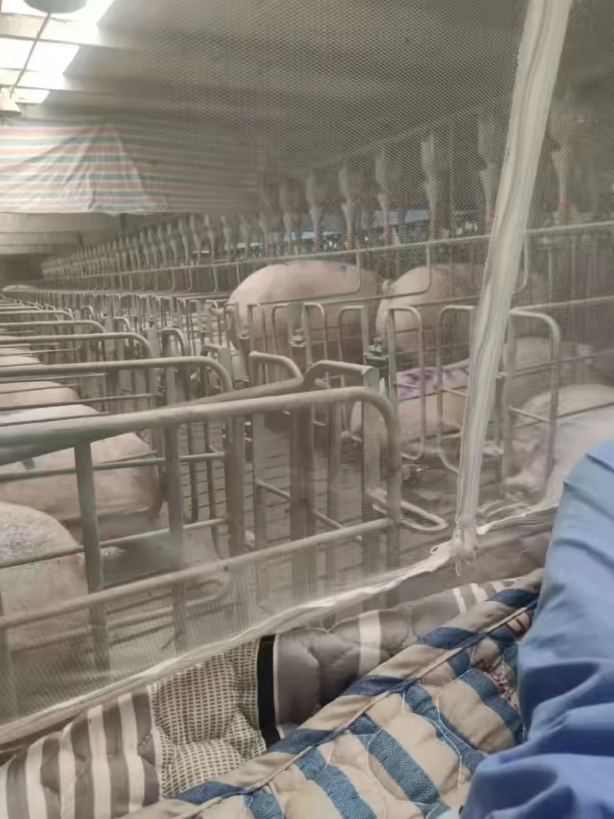 吃饱之后,猪睡得比人好。只要李迪不吵到猪,夜晚陪伴他的就只有风机的运转声和 300 多头母猪起伏的呼吸声。