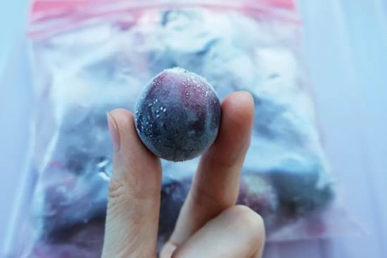 ps,冻蓝莓和冻葡萄我觉得很像,也是先爆皮然后果肉慢慢化开的感觉,酸酸甜甜的汁水,吸着倍儿清爽。