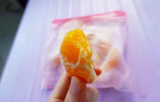 橘子一瓣瓣剥开冷冻,吃着像橙味棒冰,很有趣。