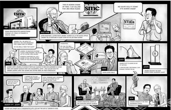 黄仁勋对此感动不已,并把这段经历画成漫画送给了张忠谋。
