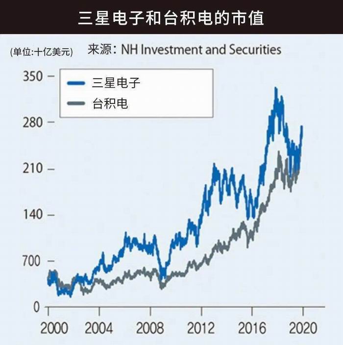 2019年7月,日本对三星断供了半导体材料,李在镕不得不赶到台湾,恳求购买原料库存,也宣告着"Kill.Taiwan"彻底破产。在12月,台积电市值还短暂地超越了三星,当上了全球半导体老大。这场自2004年开启的对决,历经四个阶段,终于落下帷幕。
