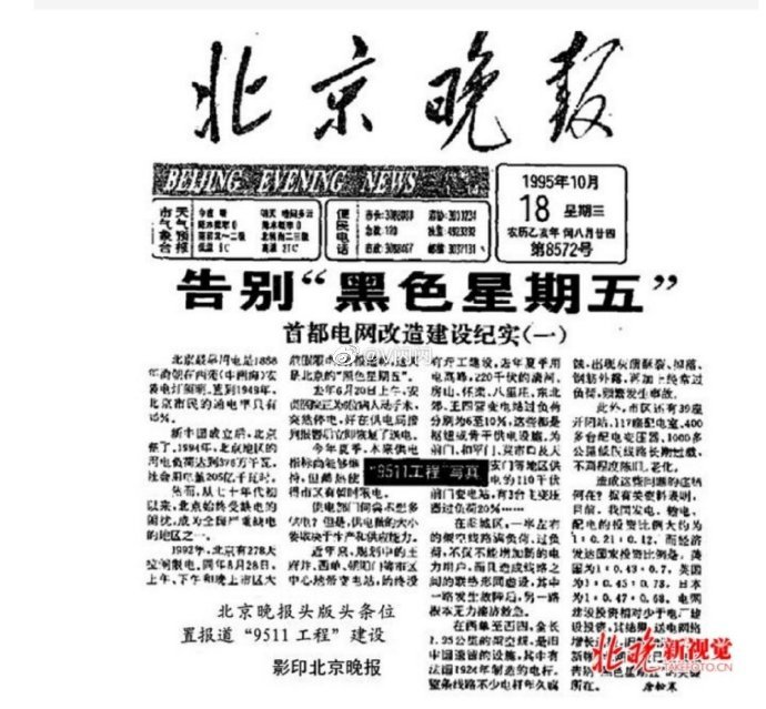 如今,北京的电网水平早已赶超发达国家,所以这段历史也渐渐被人遗忘了。中国在90年代到今天的电力基础建设大发展,才是今天中国信息化社会繁荣的根本,没这些,哪来的电商云集,带货盛行?微博都存在不下去。