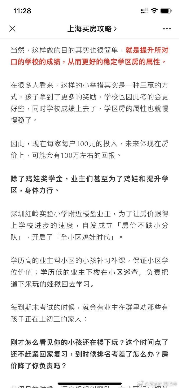 @屠龙的胭脂井:不能我一个人笑死[允悲][允悲][笑cry]。群里看来的,现在学区房社区,业主们都搞了“小分队”,学历高的给全小区孩子补课,学历低的去楼下巡查,谁家孩子还在玩[允悲][笑cry]。。。。