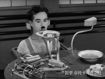 这种对时间进行死扣细节式的管理,让我脑子里一下子冒出了喜剧大师卓别林的经典电影《摩登时代》里的吃饭机。