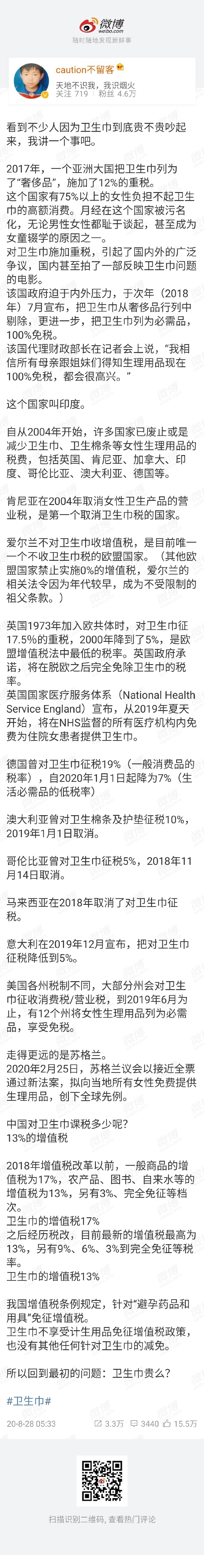 我们真的去关注这些底层女性,她们连两毛二一片的卫生巾都用不起,是不是因为这片卫生巾里有13%也就是两分钱的增值税?当然不是,她们是因为穷,因为没钱所以才买不起。