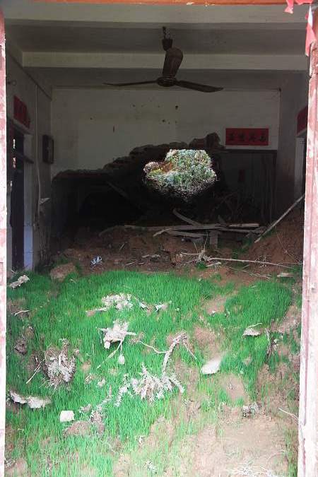 这就是他们的大厅。被冲出来的谷已经发芽了。