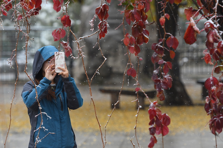10月30日午间,吉林长春普降大雪。大雪给人们出行带来不便。但有的市民却非常开心。因为好久没见到雪了。