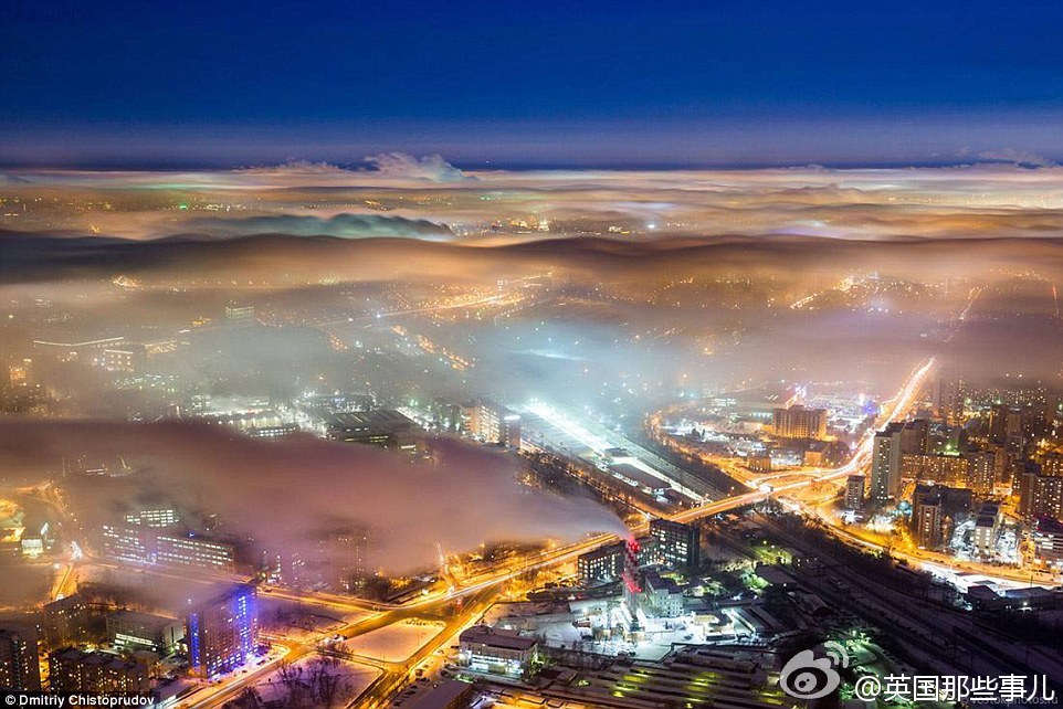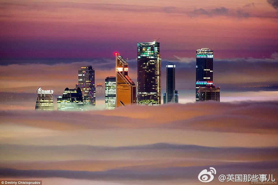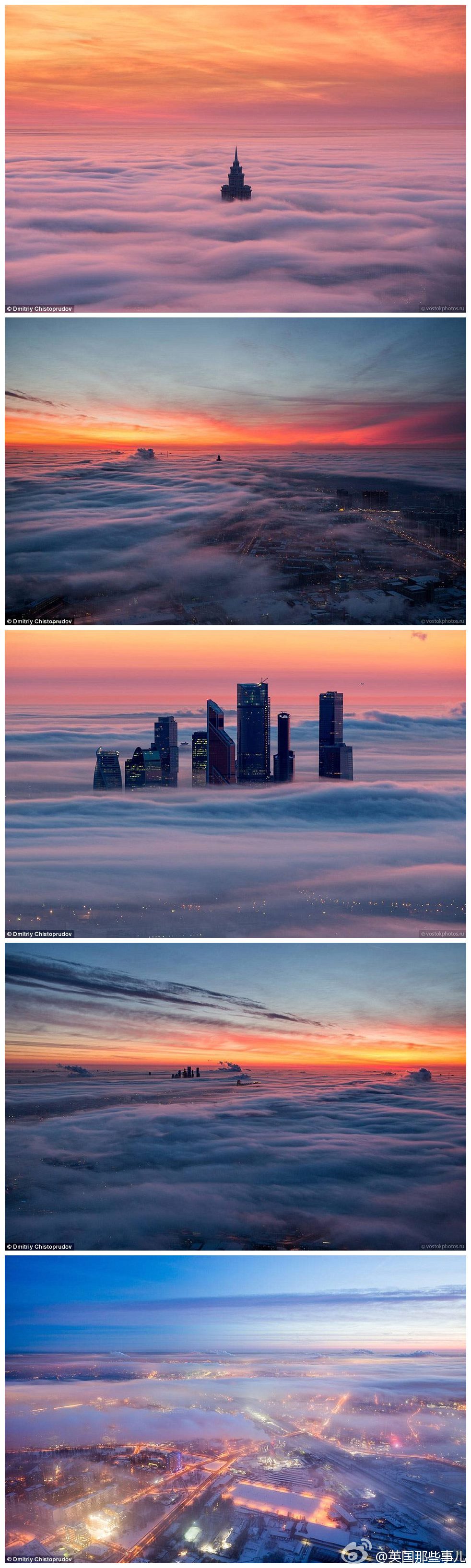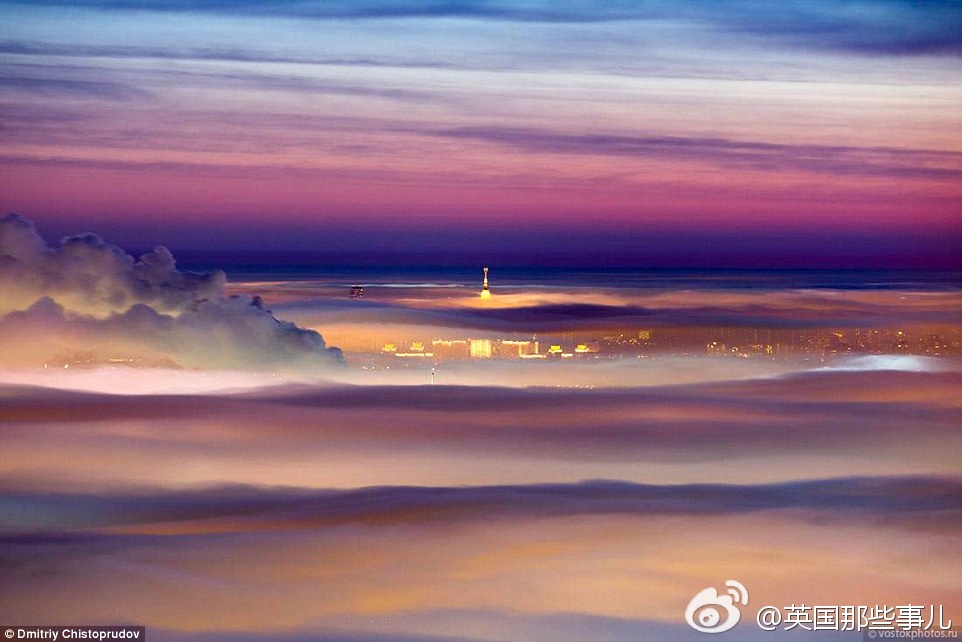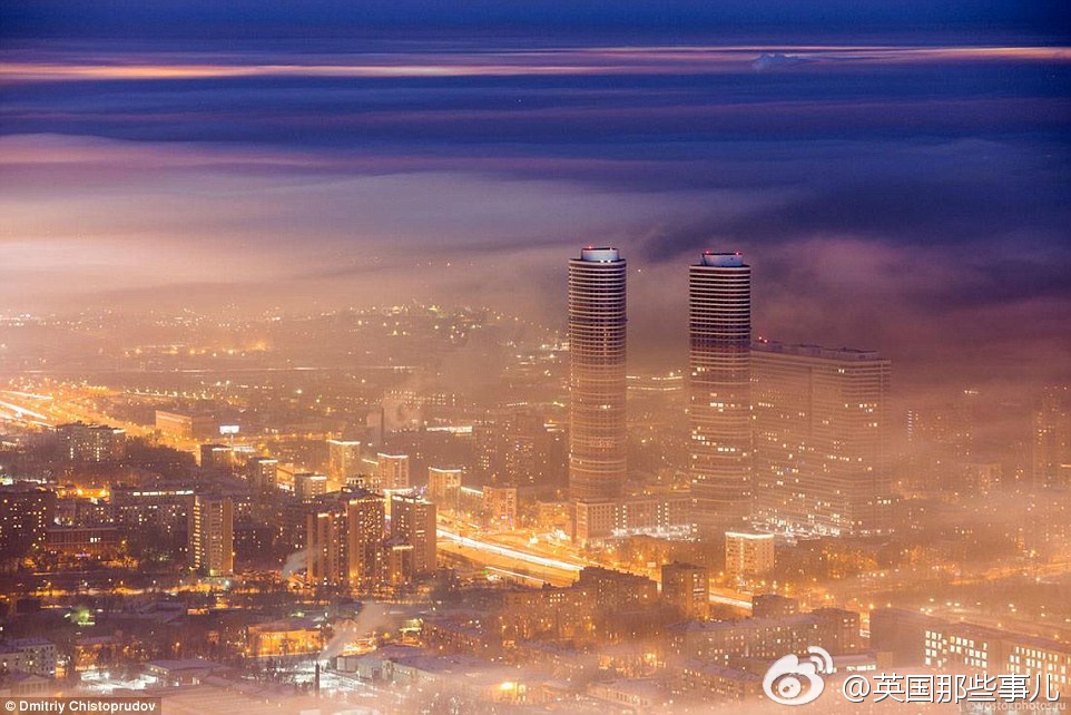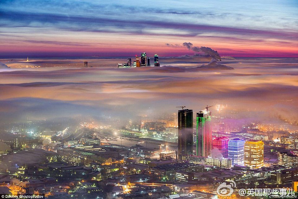 一场平流雾,笼盖了莫斯科...... 摄影师Dmitriy Chistoprudov 跑到莫斯科电视塔顶端拍下这一幕..... 美~~~ ​​​​