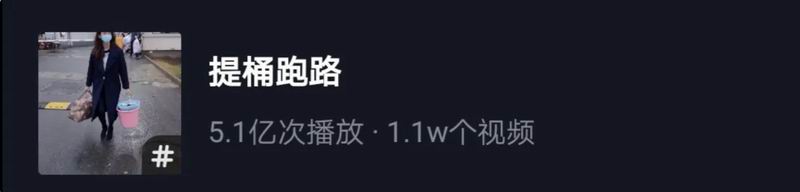 今天在抖音上"提桶跑路"的话题热度已经超过5亿,这些视频风格很统一--画面上一个年轻人提着塑料桶,背着凉席黯然离开,加上略带无奈的自嘲背景音:"xx电子厂挑战失败,提桶跑路。"