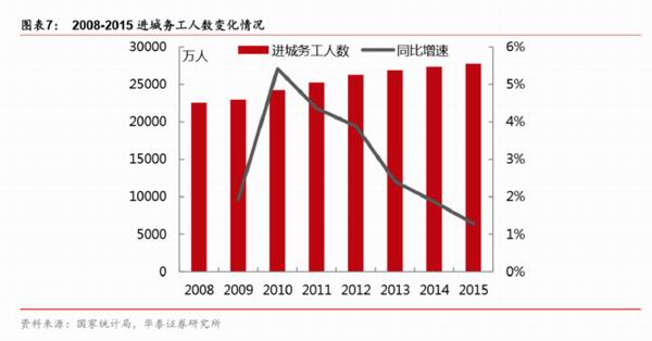 老干妈的品牌扩张乘上了我国城镇化的东风。随着我国城镇化建设的推进,基础设施建设和房地产投资不断扩大,对劳动力的需求攀升。农村进城务工人数也随之上升,2015年我国进城务工人员数量达到2.78亿人。