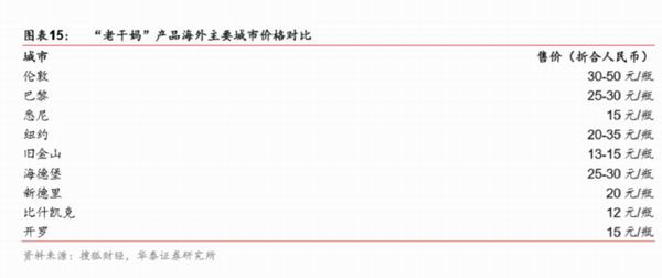 老干妈的品牌影响力在海外不断发酵,老干妈顺势在海外采取差异化定价,打造品牌的高端形象。外国电商网站上两瓶老干妈的定价达到79.1元人民币,成为名副其实的"奢侈品"。