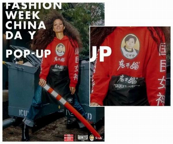 老干妈也凭借与Opening.Ceremony联名推出的卫衣登上2019春夏纽约时装周,强势攻入时尚圈。老干妈与时装周的碰撞引起了强烈的反响,这款印着陶华碧头像和"国民女神"、"sauce.queen"字眼的卫衣成功吸引了新一代的消费者。