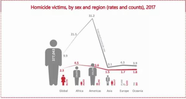 2017年,全球凶杀受害者:81%男性,19%女性。