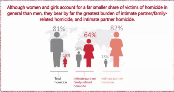 全球男性受害者,断送在外人手上的多;全球女性受害者,倒在自己人手下的多。