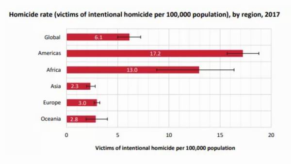 昨天我对家庭凶杀案的数据好奇,所以找到了2019年UNODC(联合国药物和犯罪问题办公室)的报告,看了看数据。