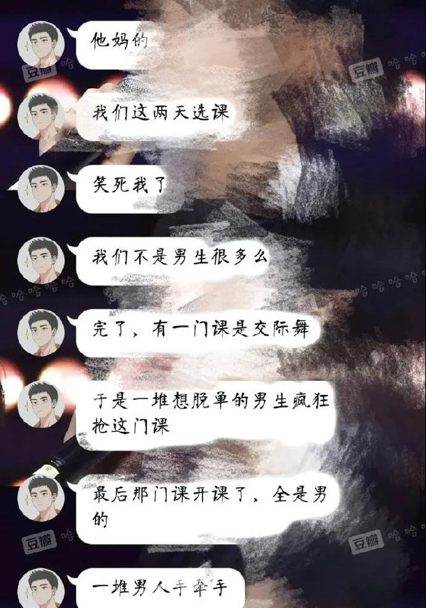 我们学校以前上舞蹈课也是那样男女分配比例不够那些剩男们只能手牵手跳个舞了[39]