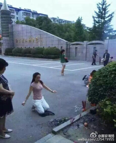 著名仙桃(沔阳)中学门口,高考家长在各显神通。