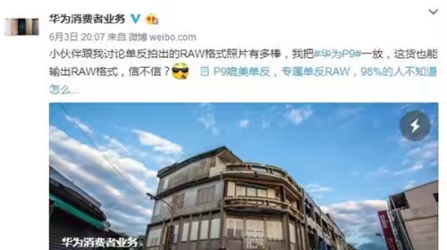 离华为上次出事刚到一个月。6月3日,@华为消费者业务官方微博发微博引用了华为“花粉俱乐部”中一篇帖子称,华为P9媲美单反,可以用单反一样的RAW格式拍摄,并图文并茂地提供了样张解释。但很快,微博用户@阿卓指出,这几张照片真的是他用RAW格式拍摄的,并且很久之前发表于其他数码社区,此文盗图宣传P9是造假行为。