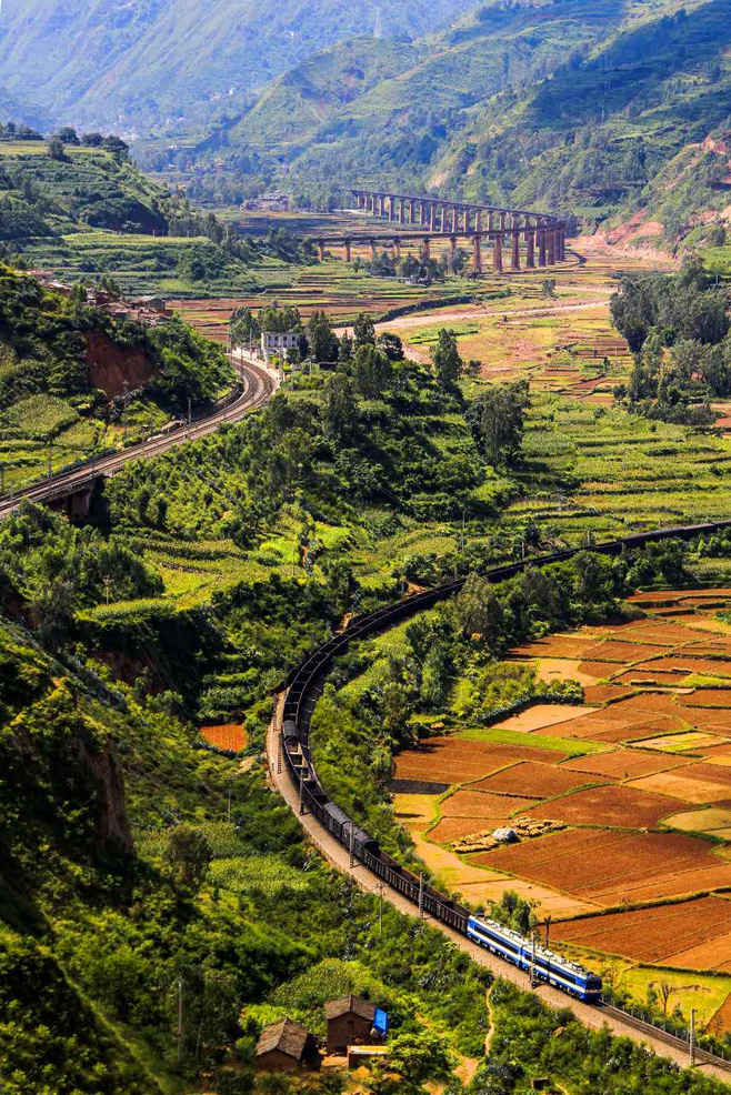 图片好看,但是那么大一列火车飞过,你管这个叫宁静山村?