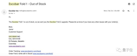 终于到了2020年2月2日,一个史上最2日,马奎斯收到了Escobar公司的邮件,询问邮寄地址。