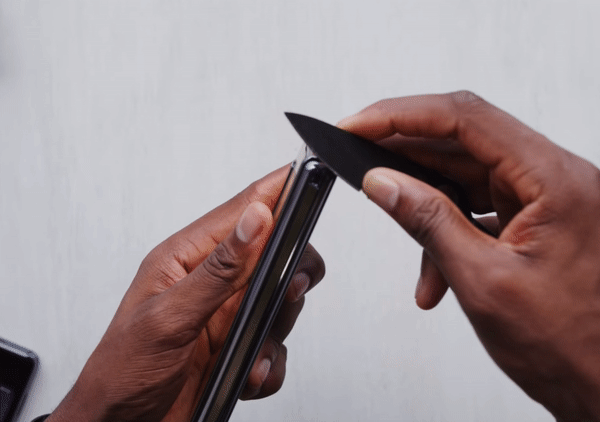 而另一位博主Mrwhosetheboss,连小刀都没用,就徒手撕下了上面的金色薄膜
