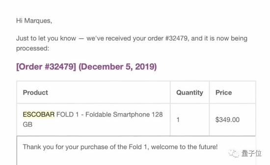 2019年12月5日,他花了349美元下单购买了Escobar.Fold.1手机。