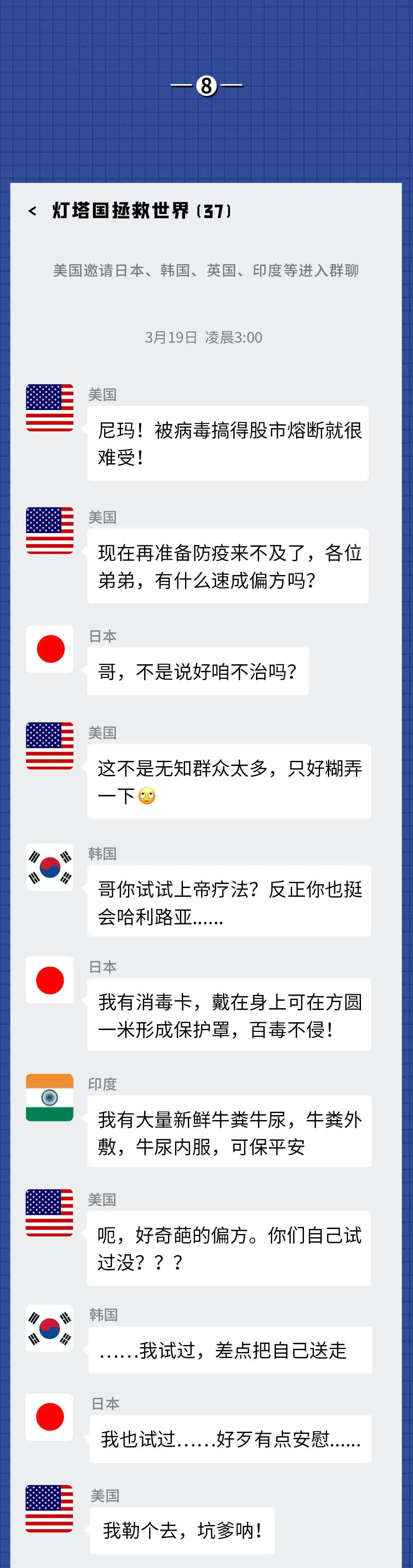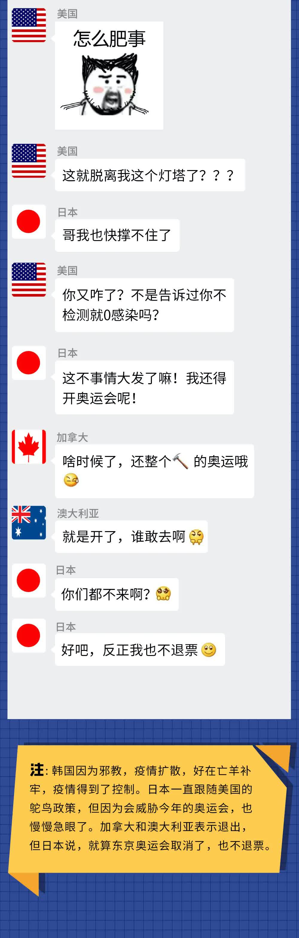 假如疫情下的世界各国在一个群里,会聊什么?