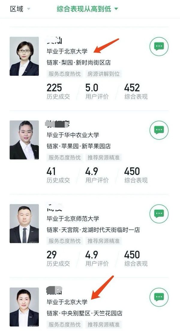 突然发现一个热搜:北大毕业去链家当中介。下图中,有两位明星中介就是北大毕业的,另外两位也毕业于不错的大学。