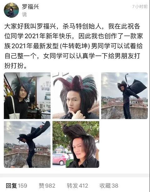 昨日,“杀马特” 创始人罗福兴在豆瓣向大家展示了自己设计的 2021 年最新杀马特发型 —— 牛转乾坤。