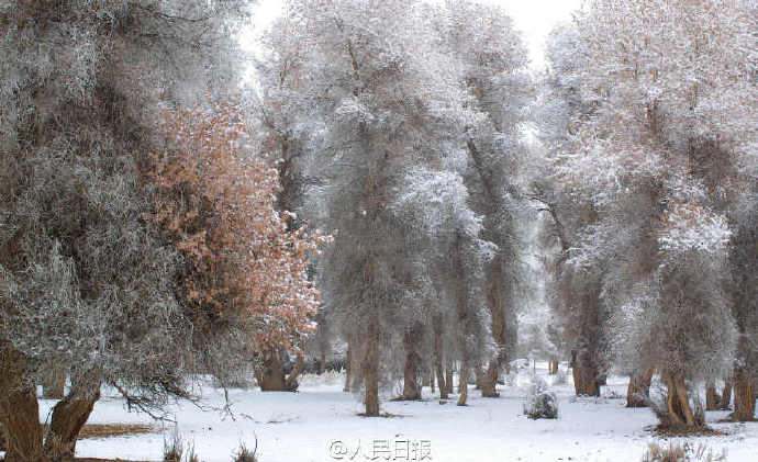 美呆了!新疆雪后迷雾中的胡杨美景