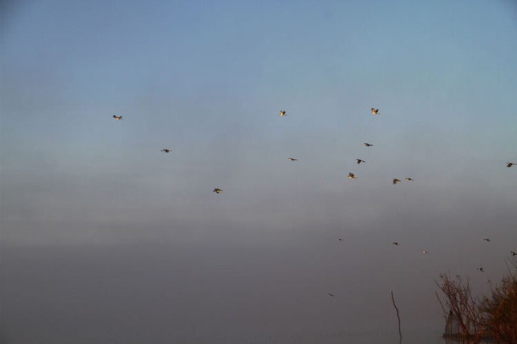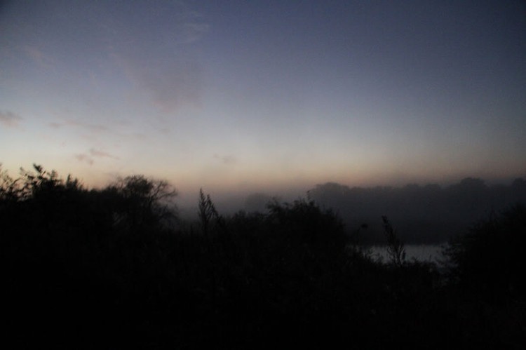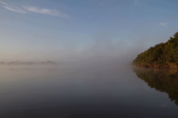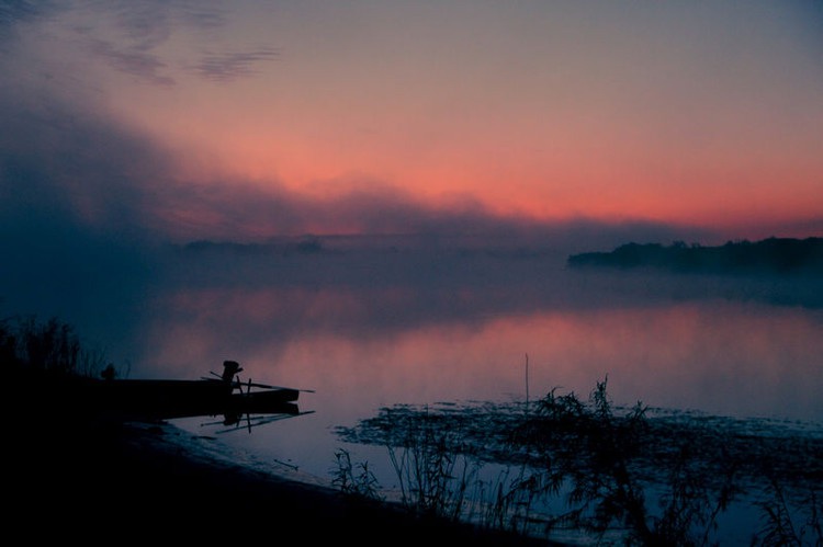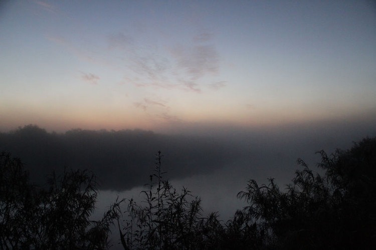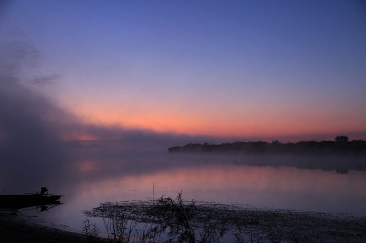 清晨的江边,大雾弥漫,鱼肚白在东方渐渐的显现。